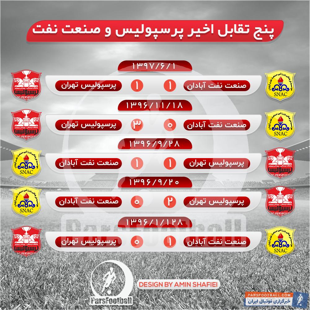 به بررسی نتایج پنج تقابل اخیر پرسپولیس و صنعت نفت آبادان می پردازیم.