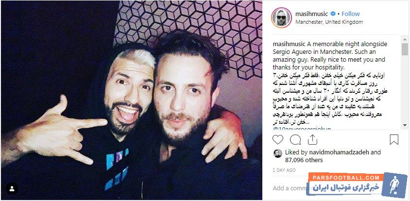 مسیح عدل‌پرور، خواننده موسیقی پاپ، عکسی از سفر کاری خود به انگلستان را منتشر کرد. او در این عکس، کنارِ سرخیو آگوئرو، ستاره منچسترسیتی قرار گرفته است.