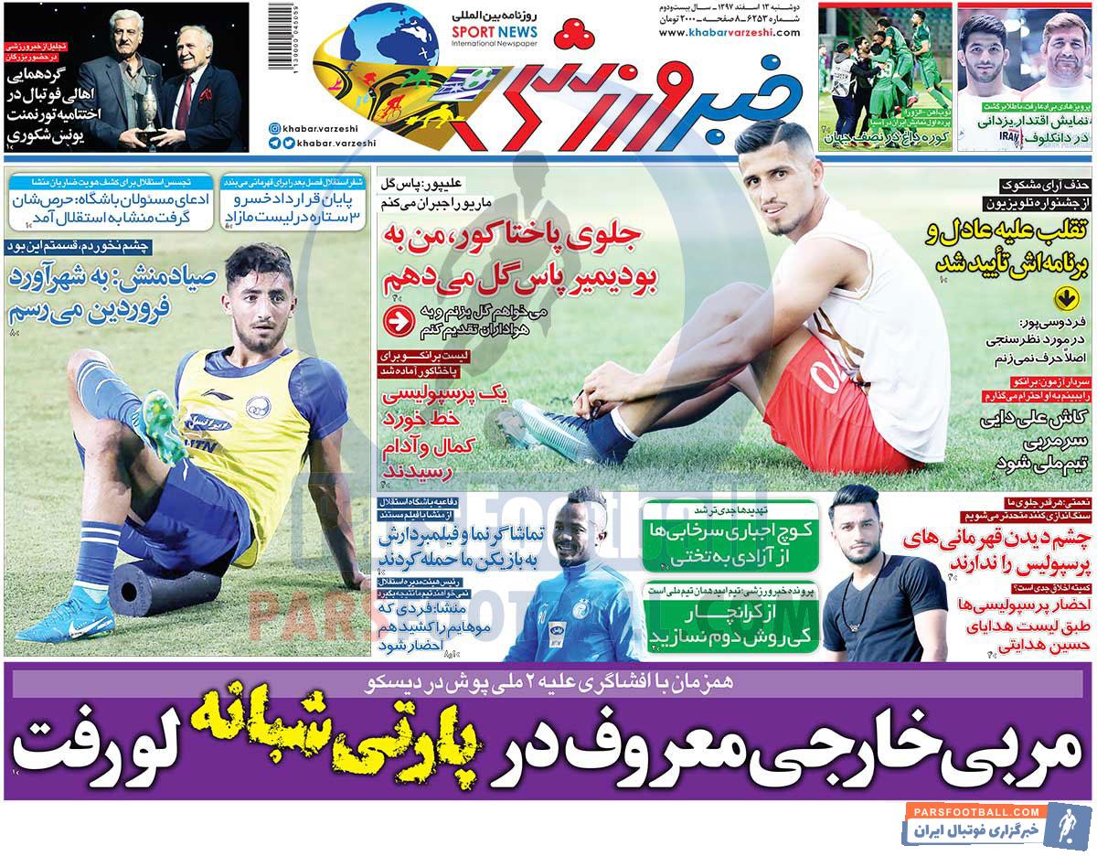 عناوین روزنامه خبر ورزشی دوشنبه ۱۳ اسفند ماه به شرح زیر است :