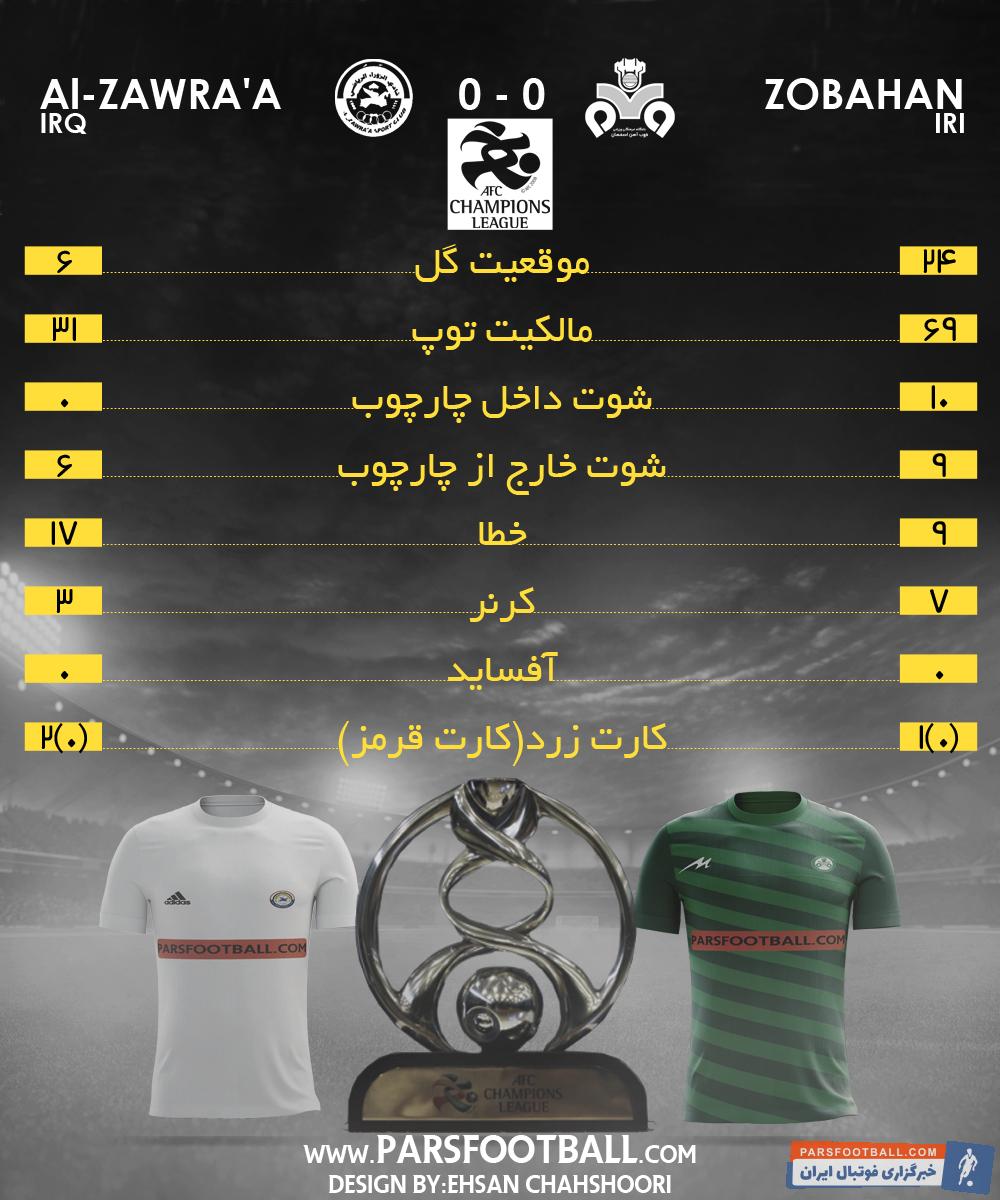 الزوراء که با قهرمانی در سوپر لیگ عراق به لیگ قهرمانان راه یافت، امشب نمایش تدافعی مقابل ذوبآهن ارائه داد و به دنبال کسب یک امتیاز بود که در انجام این کار موفق بود و توانست با تساوی اصفهان را ترک کند و در شروع این بازیها یک امتیاز بگیرد.