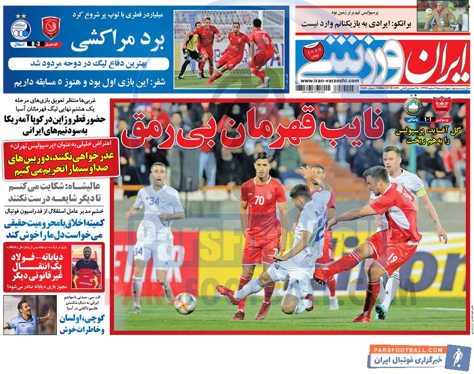 عناوین روزنامه ایران ورزشی چهارشنبه ۱۵ اسفند ماه به شرح زیر است :