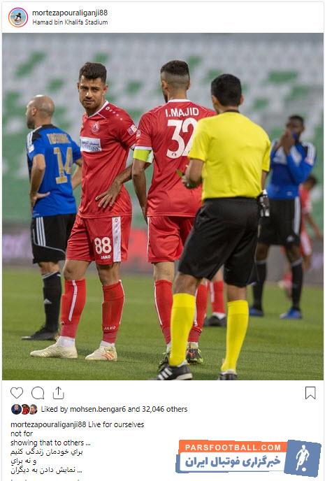 مرتضی پورعلی گنجی ستاره تیم ملی ایران پست جدید و معناداری را در اینستاگرام خود منتشر کرد .مرتضی پورعلی گنجی در این پست نوشت :