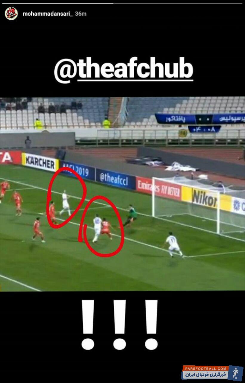 مدافع مصدوم تیم فوتبال پرسپولیس با انتشار تصویری به کمیته بازی های لیگ قهرمانان آسیا بابت گلزنی پاختاکور اعتراض کرد.