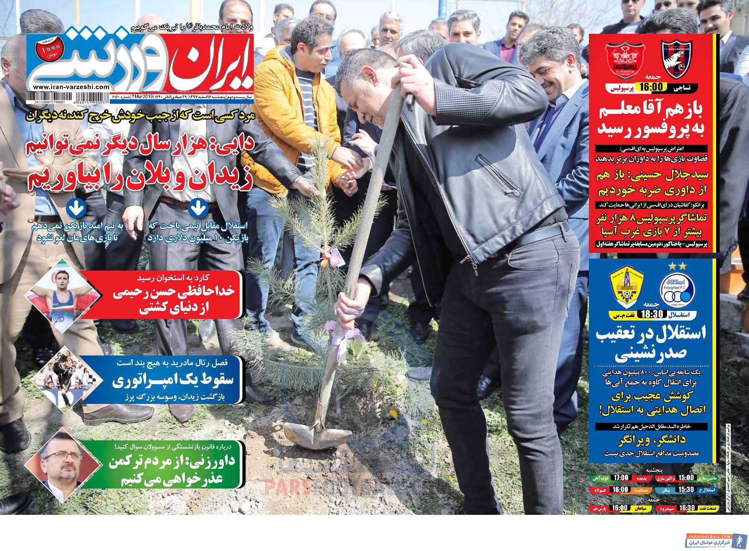 عناوین روزنامه ایران ورزشی پنجشنبه ۱۶ اسفند ماه به شرح زیر است :