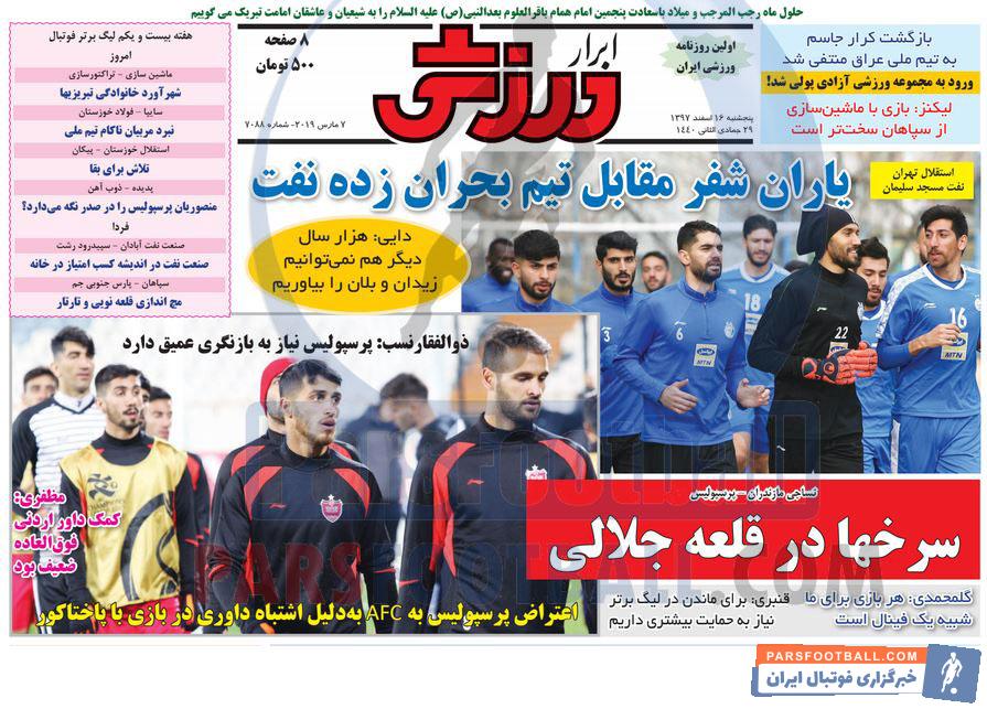 عناوین روزنامه ابرار ورزشی پنجشنبه ۱۶ اسفند ماه به شرح زیر است :