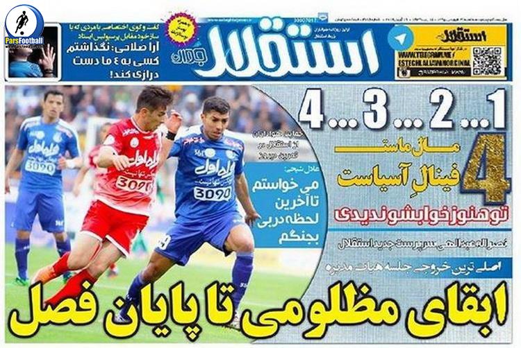 نگاهی داریم بر نیم صفحه نخست روزنامه استقلال جوان، سه شنبه ۳۱ فروردین.