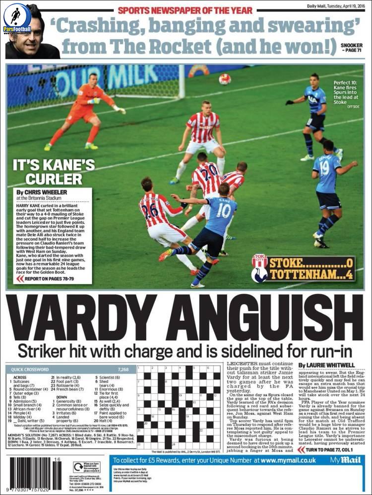 نگاهی داریم بر نیم صفحه نخست روزنامه دیلی میل اسپورت بریتانیا، ۱۹ آوریل.