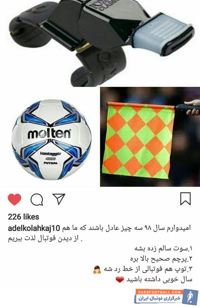 مطلب اینستاگرامی عادل کلاه کج در خصوص قضاوت داوران علیه پرسپولیس