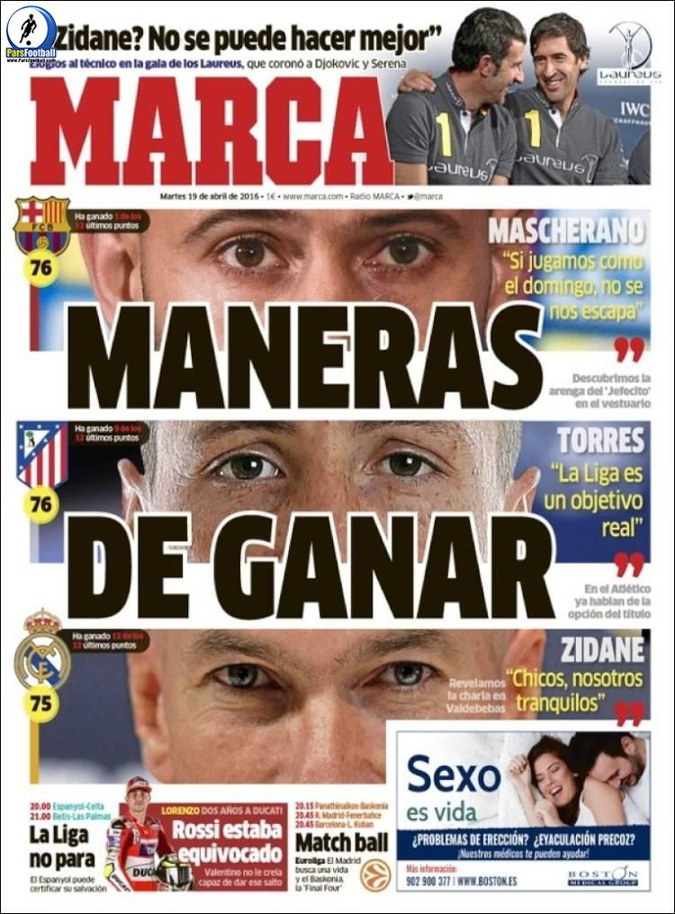نگاهی داریم بر نیم صفحه نخست روزنامه مارکا اسپانیا، ۱۹ آوریل.