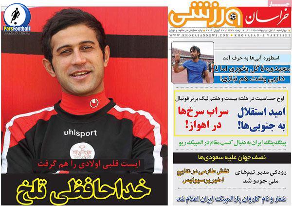 روزنامه خراسان ورزشی ۱ اردیبهشت