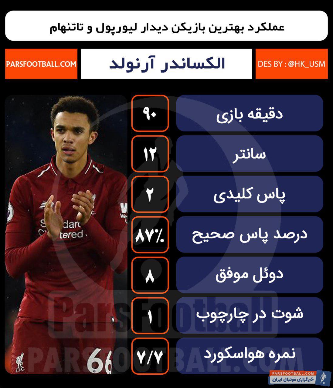 الکساندر آرنولد، بازیکن تیم فوتبال لیورپول در دیدار با تاتنهام موفق شد با امتیاز ۷٫۷ بهترین بازیکن شود. لیورپول در این دیدار به پیروزی ۲-۱دست یافت.