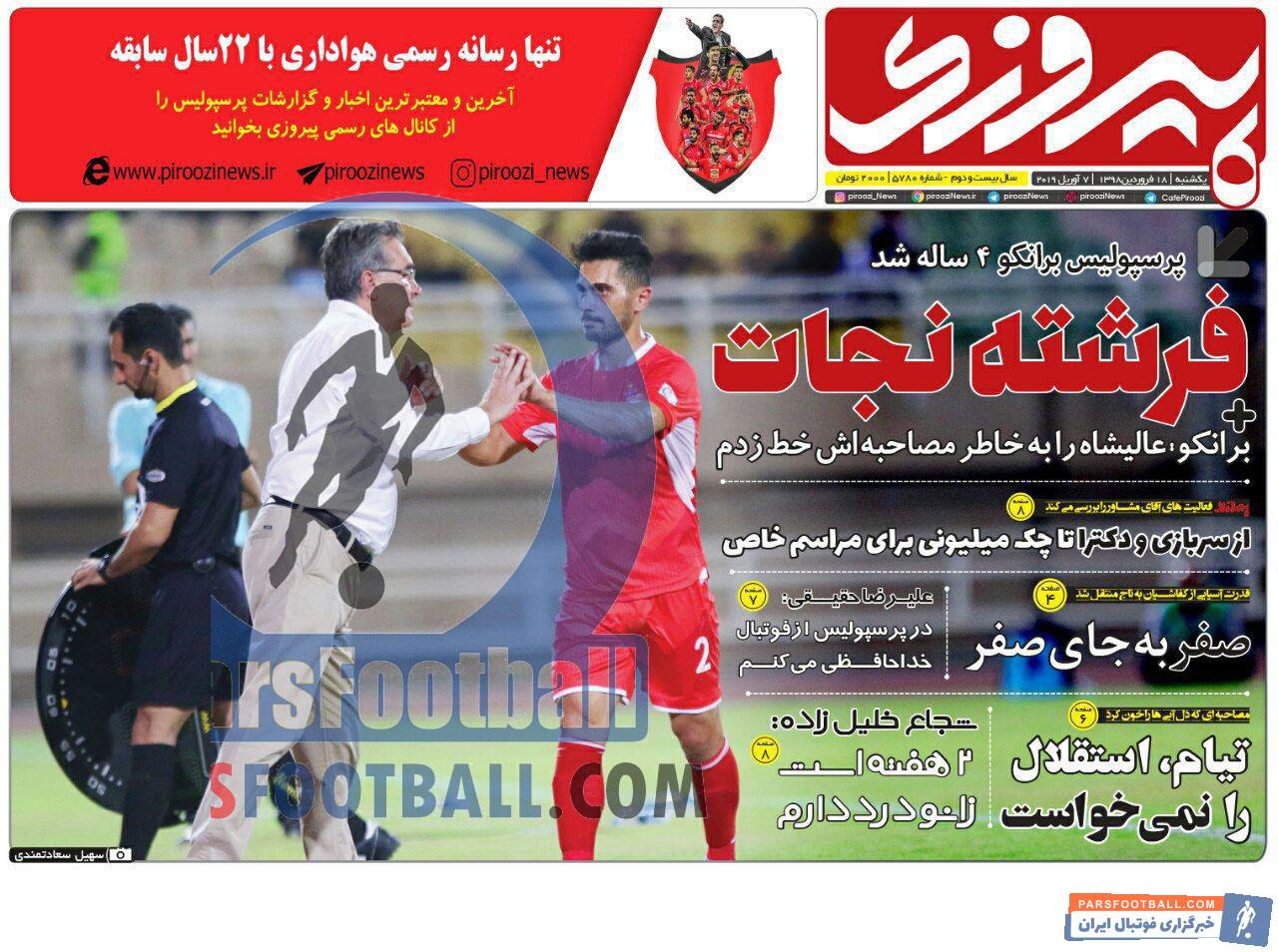 گیشه اخبار داخلی پارس فوتبال همه روزه به بررسی نشریات ورزشی می پردازد. به بررسی روزنامه پیروزی می پردازیم.