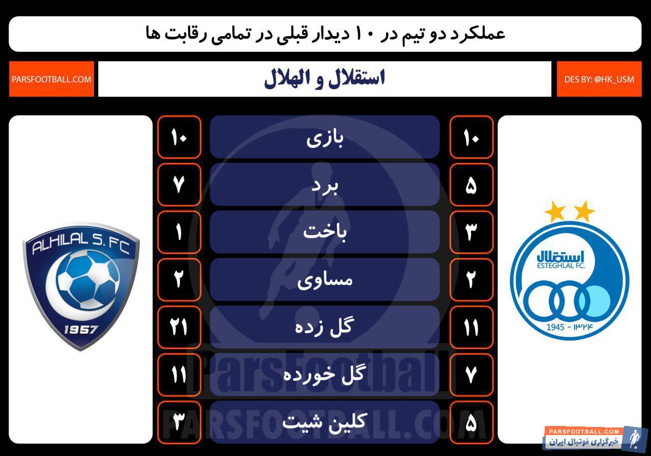 دو تیم فوتبال استقلال ایران و الهلال عربستان در رقابت های لیگ قهرمانان آسیا به مصاف هم می روند. به بررسی عملکرد دو تیم در ده دیدار اخیر می پردازیم.