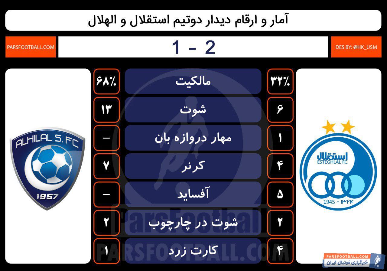 آمار این بازی منتشر شد که نشان داد الهلالیها عملکرد بهتری نسبت به شاگردان شفر داشتند اما آبیهای ایران با هوشمندی توانستند فاتح این بازی شوند.
