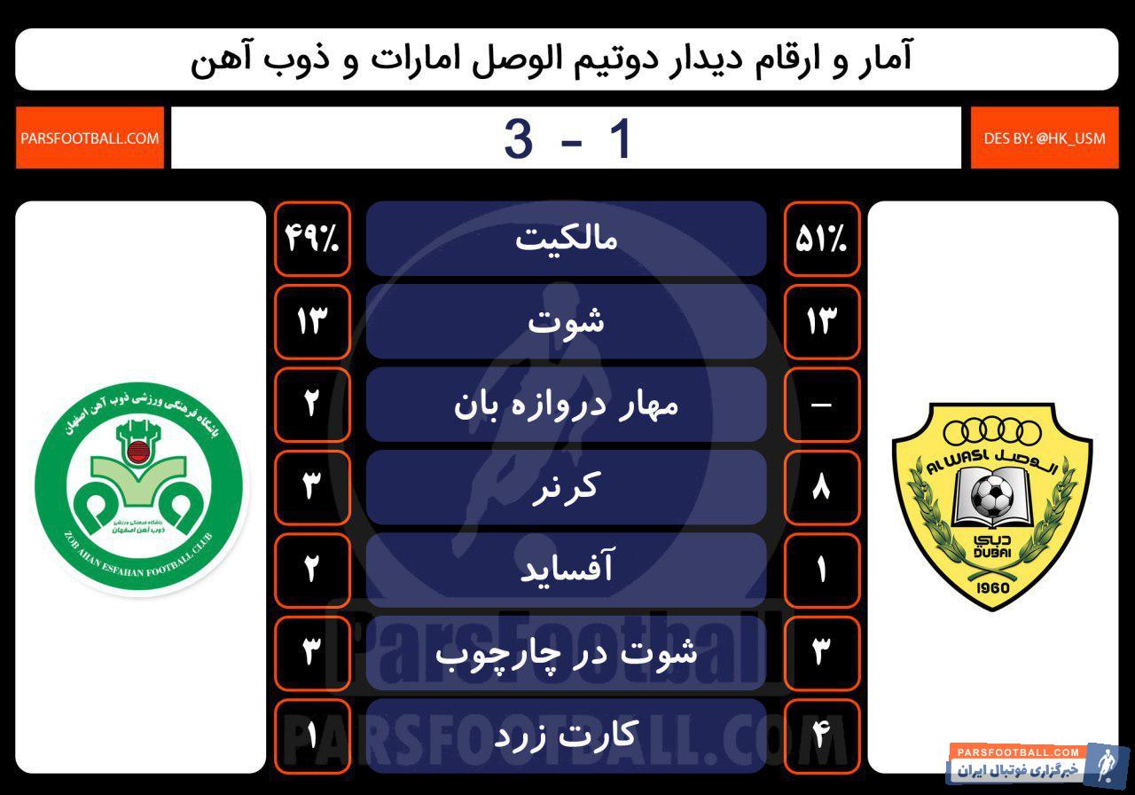 نگاهی به آمار نیمه اول دیدار ذوب آهن-الوصل +اینفوگرافی