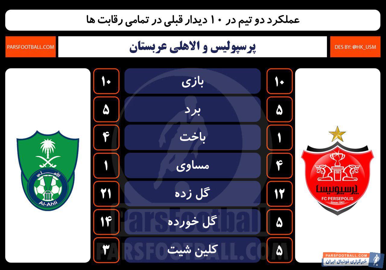 به بهانه دیدار پرسپولیس ایران و الاهلی عربستان، عملکرد دو تیم در ده دیدار اخیر را مورد بررسی قرار می‌دهیم.