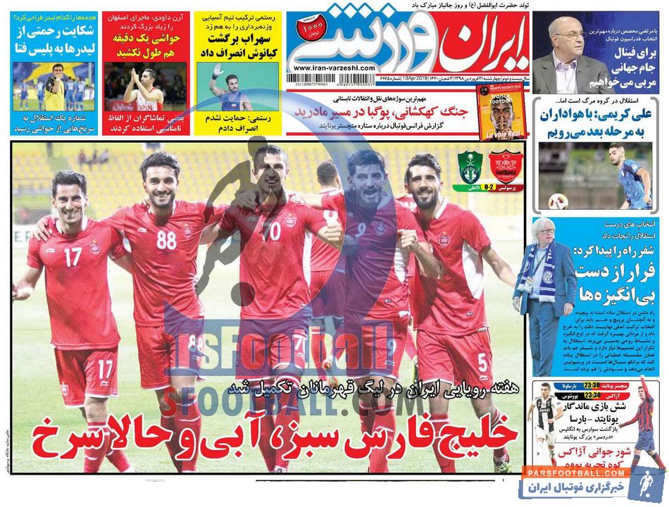 دکه پارس فوتبال ؛ ایران ورزشی ؛ شفر راه را پیدا کرد ؛ فرار از دست بی انگیزه ها ؛ هفته رویایی ایران در لیگ قهرمانان تکمیل شد ؛ خلیج فارس سبز ، آبی و حالا سرخ
