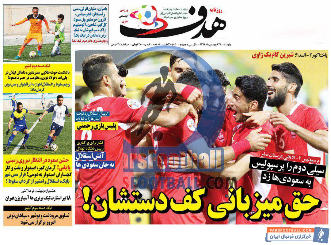 گیشه اخبار داخلی پارس فوتبال همه روزه به بررسی نشریات ورزشی می پردازد. به بررسی روزنامه هدف می پردازیم.