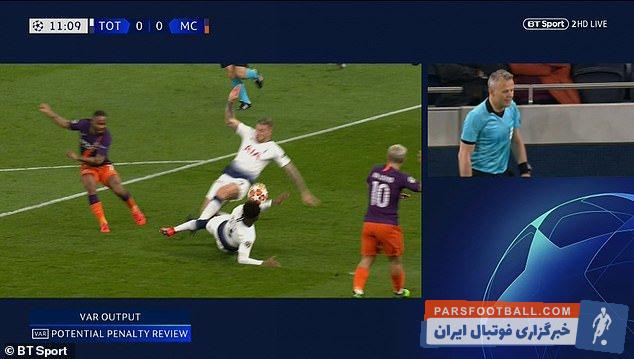 در جریان دیدار دو تیم تاتنهام و منچسترسیتی که دیشب در بازی رفت مرحله یکچهارم نهایی لیگ قهرمانان اروپا به میزبانی تاتنهام برگزار میشد، بعد از آنکه در یک صحنه به نظر رسید شوت رحیم استرلینگ در محوطه جریمه به دست دنی رز برخورد کرده، تصمیم گرفت از سیستم کمکی VAR استفاده کند و در نهایت حکم به پنالتی داد.
