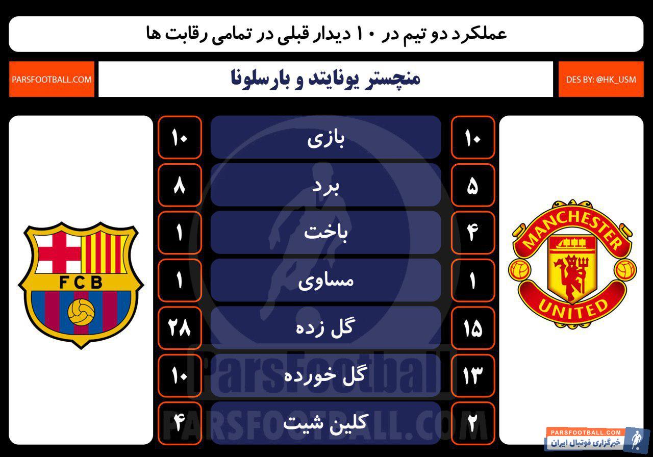 اینفوگرافی اختصاصی؛ نگاهی به عملکرد منچستریونایتد و بارسلونا در ده دیدار اخیر