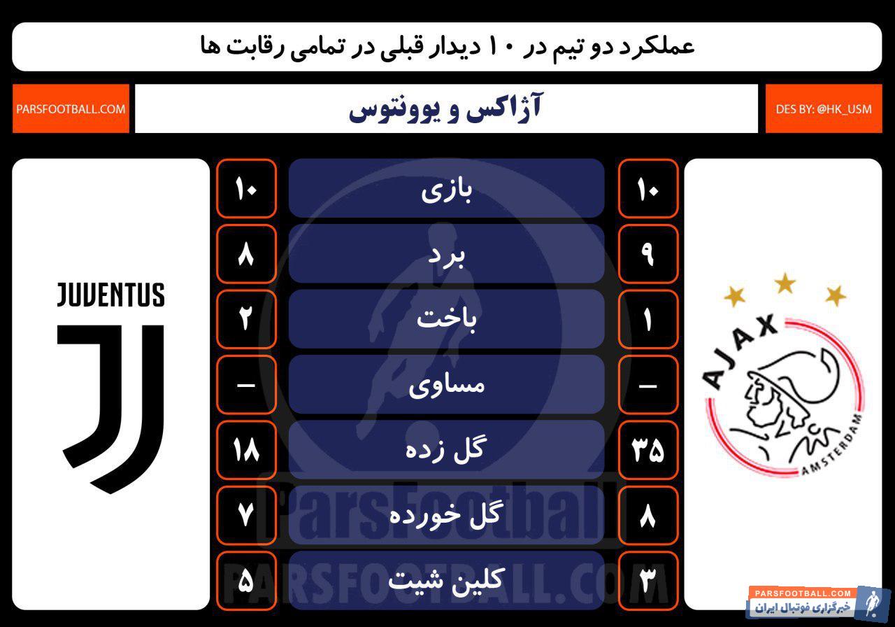 دو تیم فوتبال آژاکس و یوونتوس در مرحله یک چهارم نهایی لیگ قهرمانان اروپا به مصاف هم می روند. به بررسی عملکرد دو تیم در ده دیدار اخیر می پردازیم.
