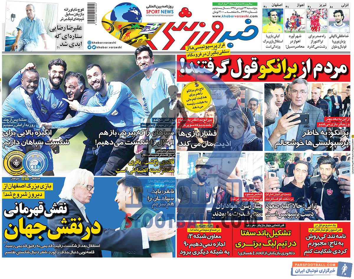 عناوین روزنامه خبر ورزشی پنجشنبه ۲۲ فروردین ماه به شرح زیر است :
