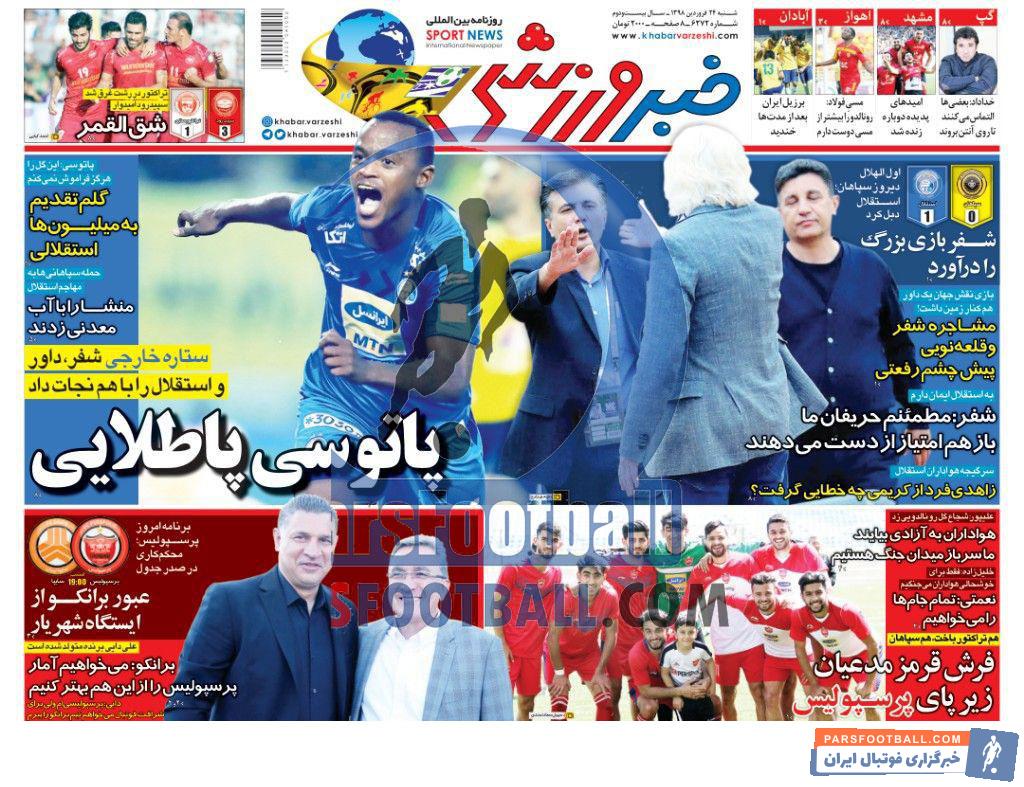 عناوین روزنامه خبر ورزشی شنبه ۲۴ فروردین ماه به شرح زیر است :