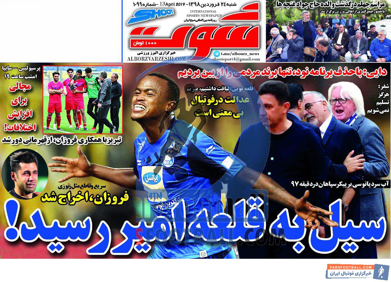 عناوین روزنامه شوت شنبه ۲۴ فروردین ماه به شرح زیر است :