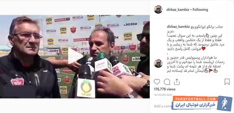 کامبیز دیرباز بازیگر سینما و تلویزیون در اینستاگرام خود با انتشار فیلمی از برانکو ایوانکوویچ سرمربی تیم پرسپولیس نوشت: