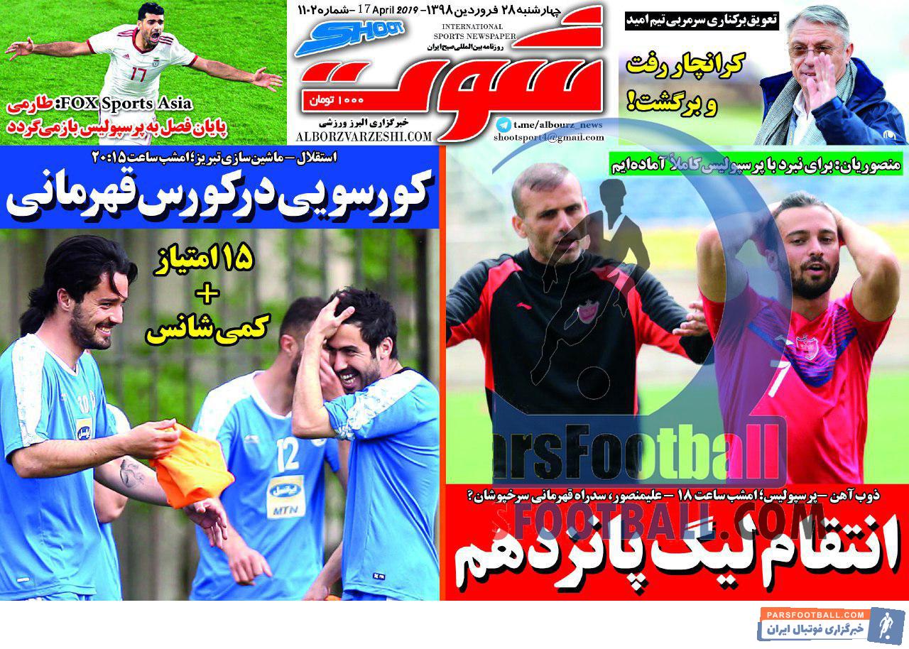 عناوین روزنامه شوت چهارشنبه ۲۸ فروردین ماه به شرح زیر است :
