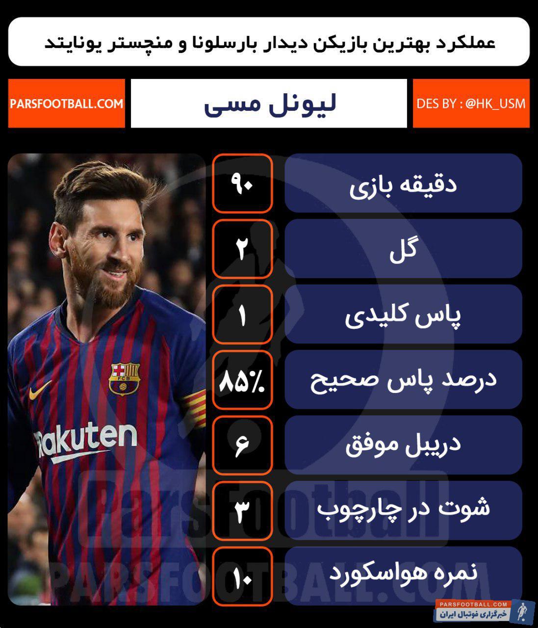 بررسی عملکرد لیونل مسی در دیدار بارسلونا-منچستریونایتد +اینفوگرافی