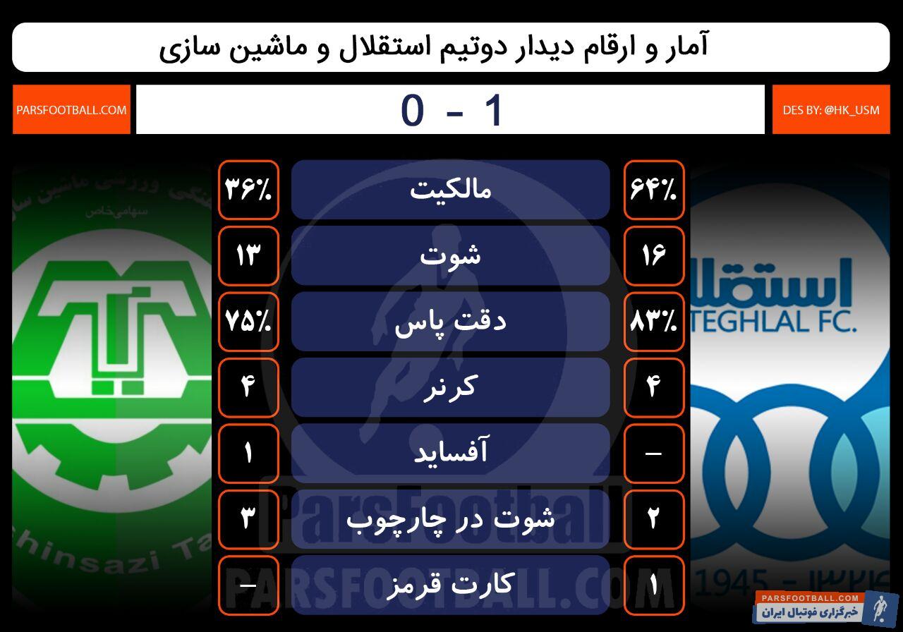 به بررسی آمار و ارقام دیدار استقلال تهران و ماشین سازی تبریز که در هفته بیست و ششم رقابت های لیگ برتر خلیج فارس در ورزشگاه آزادی برگزار شد می‌پردازیم.