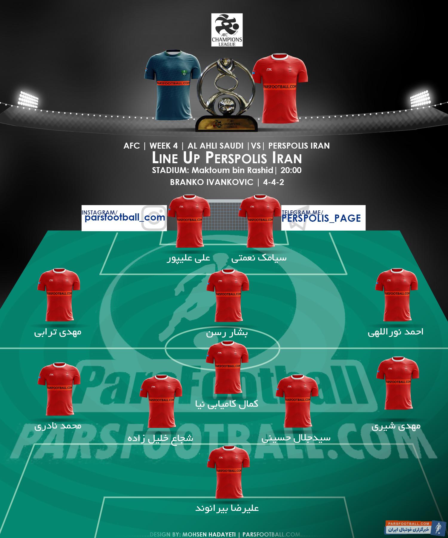 ترکیب شماتیکی پرسپولیس برابر الاهلی عربستان مشخص شد +اینفوگرافی