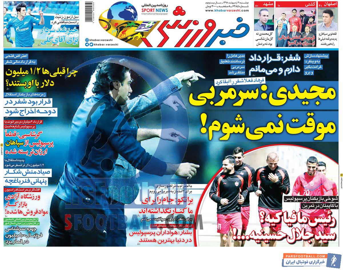 عناوین روزنامه خبر ورزشی دوشنبه ۹ اردیبهشت ماه به شرح زیر است :