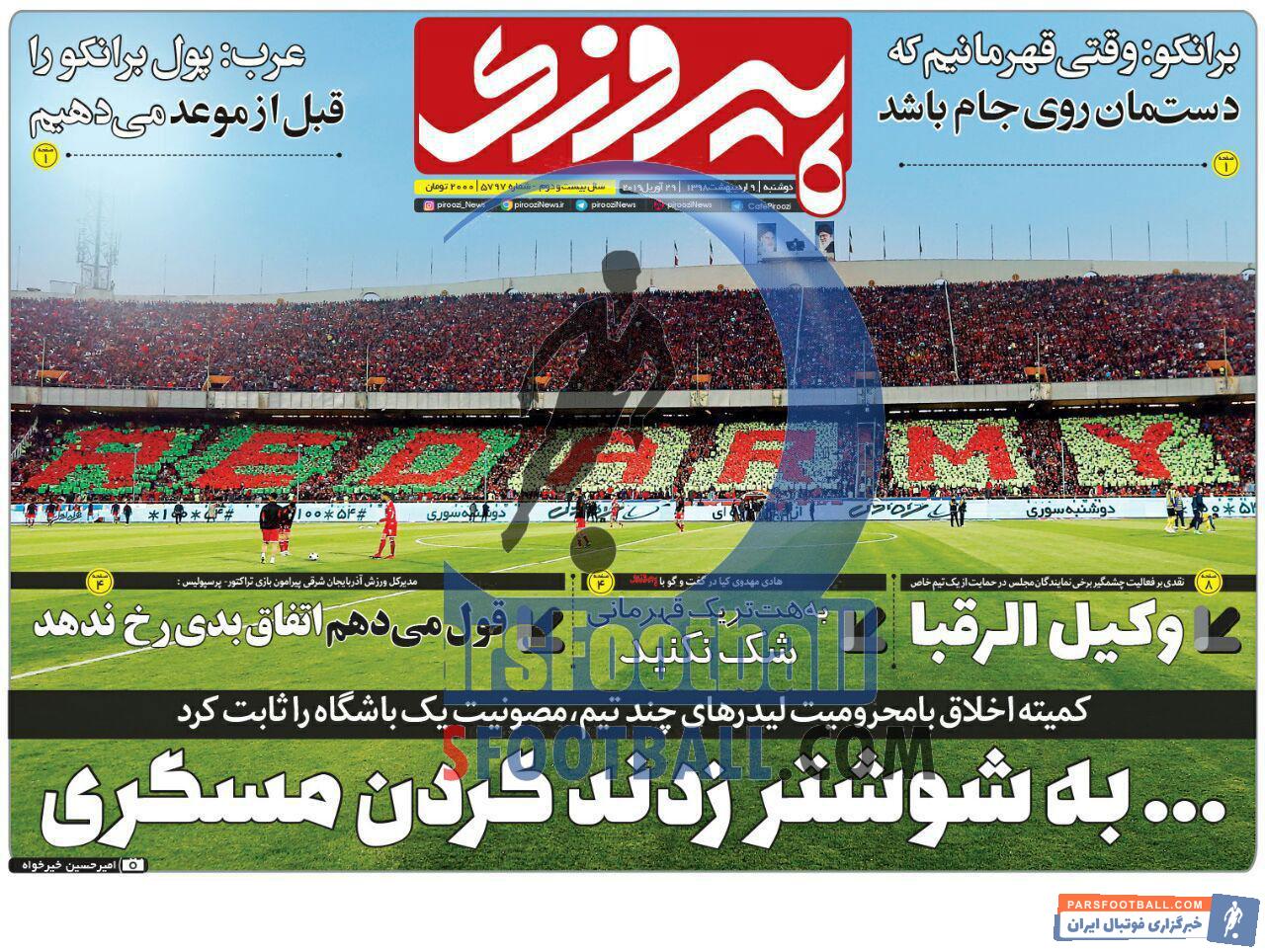 گیشه اخبار داخلی پارس فوتبال همه روزه به بررسی نشریات ورزشی می پردازد. به بررسی روزنامه پیروزی می پردازیم.