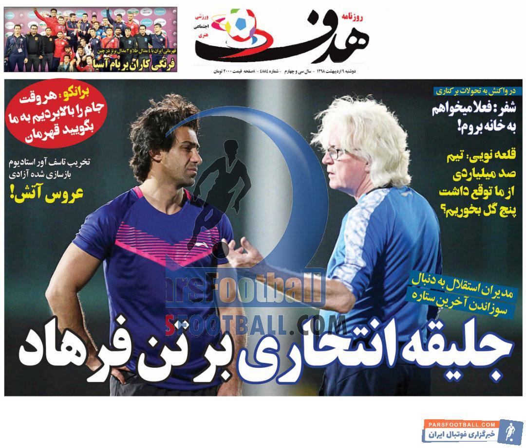 مرور عناوین مهم روزنامه هدف دوشنبه 9 اردیبهشت 98