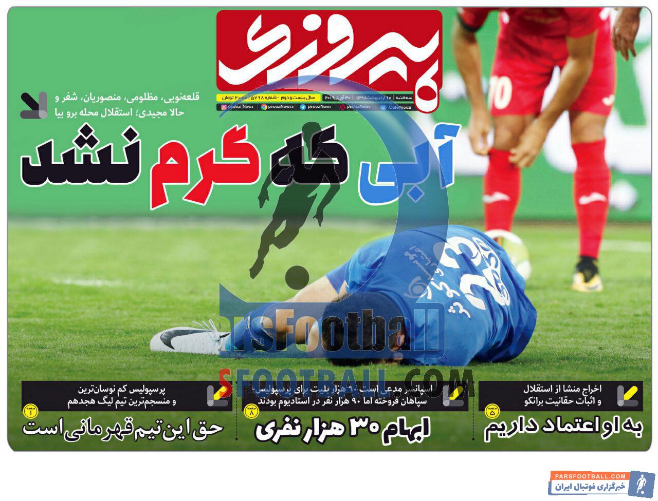 گیشه اخبار داخلی پارس فوتبال همه روزه به بررسی نشریات ورزشی می پردازد. به بررسی روزنامه پیروزی می پردازیم.