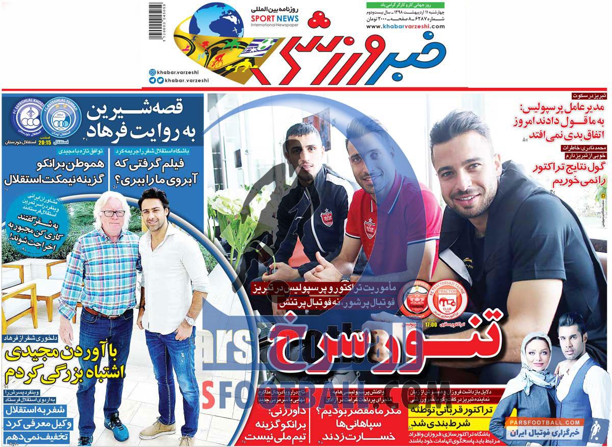 عناوین روزنامه خبر ورزشی چهارشنبه ۱۱ اردیبهشت ماه به شرح زیر است :