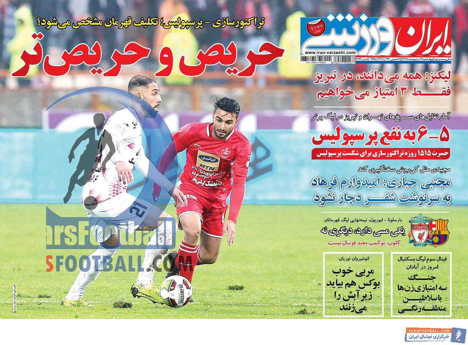 عناوین روزنامه ایران ورزشی چهارشنبه ۱۱ اردیبهشت ماه به شرح زیر است :