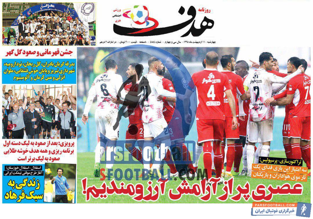 گیشه اخبار داخلی پارس فوتبال همه روزه به بررسی نشریات ورزشی می پردازد. به بررسی روزنامه هدف می پردازیم.