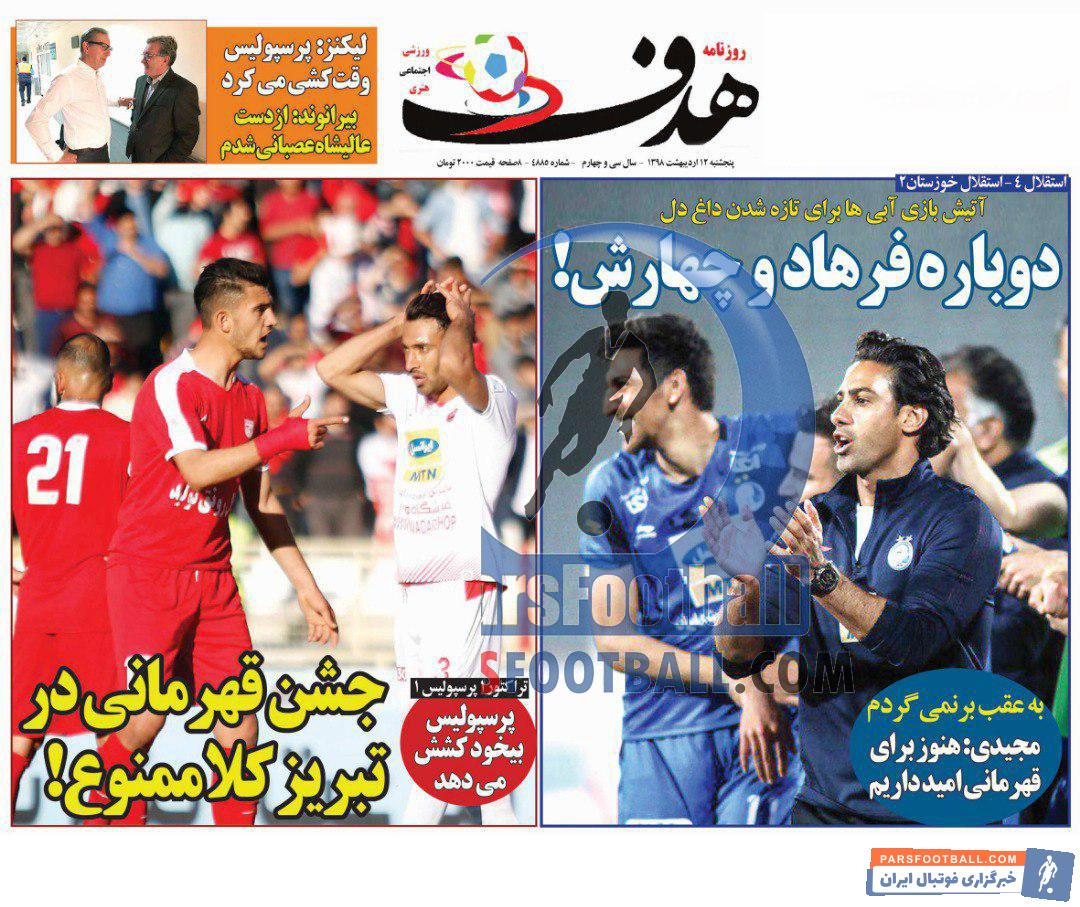 مرور عناوین مهم روزنامه هدف پنجشنبه 12 اردیبهشت 98