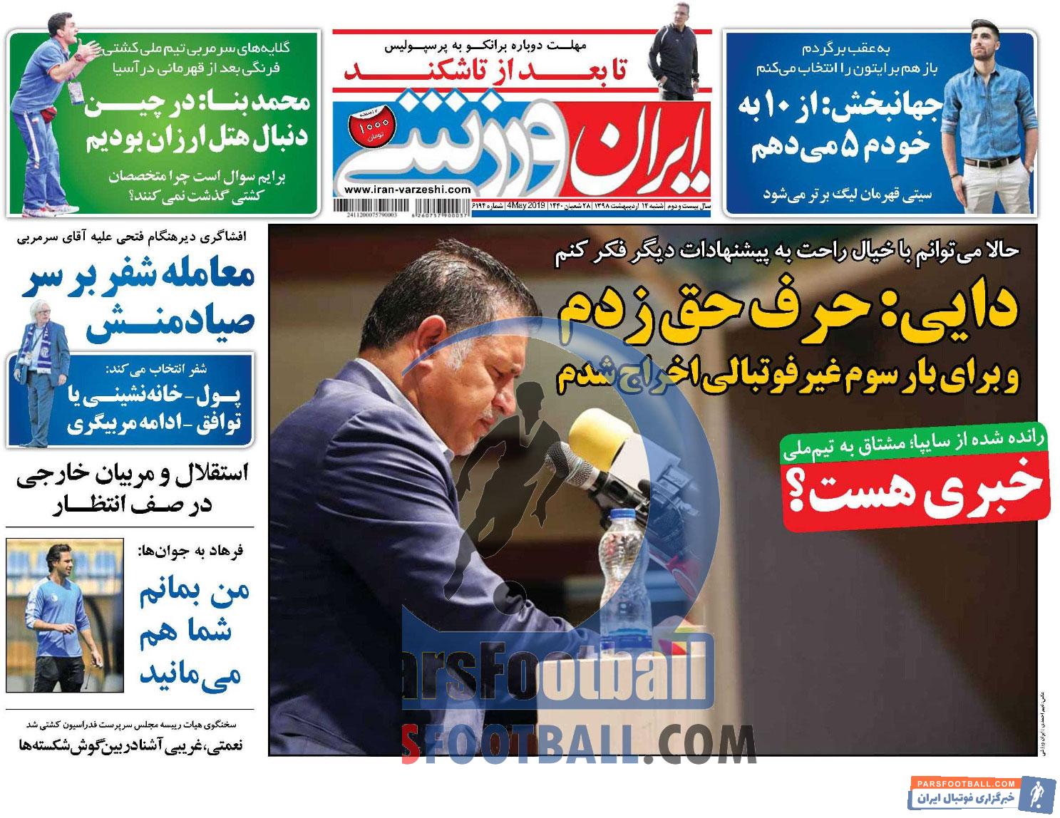 مرور عناوین مهم روزنامه ایران ورزشی شنبه 14 اردیبهشت 98