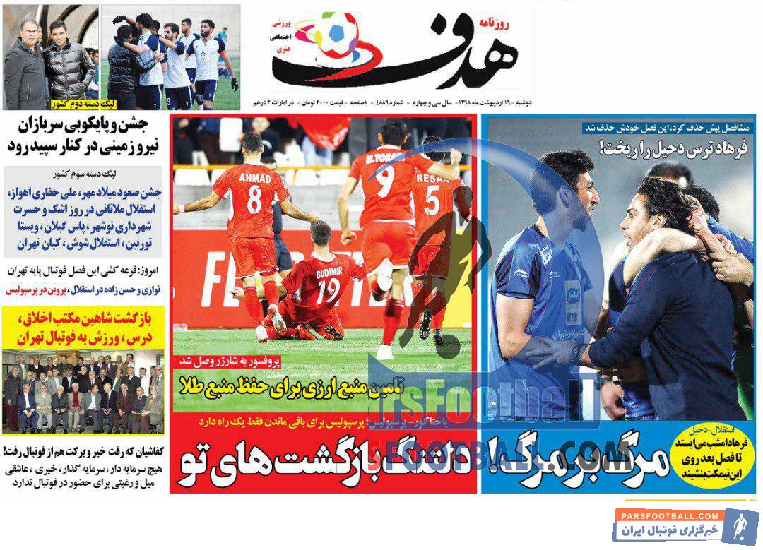 گیشه اخبار داخلی پارس فوتبال همه روزه به بررسی نشریات ورزشی می پردازد. به بررسی روزنامه هدف می پردازیم.