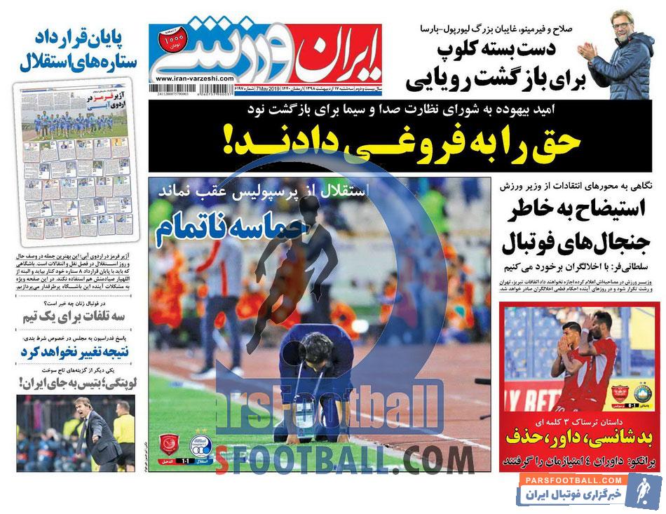 عناوین روزنامه ایران ورزشی سه شنبه ۱۷ اردیبهشت ماه به شرح زیر است :