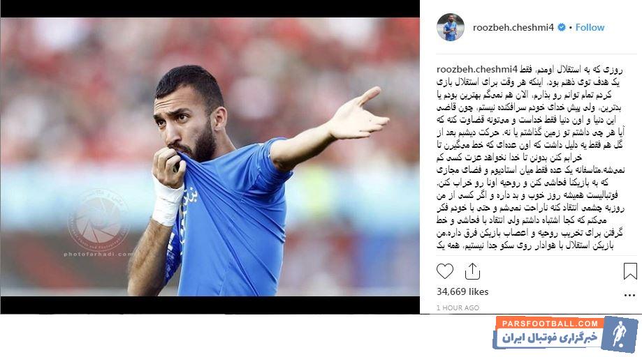 اما روزبه چشمی برای توضیح این اتفاق، سراغ صفحه شخصی خود در اینستاگرام رفت و این پست را منتشر کرد: