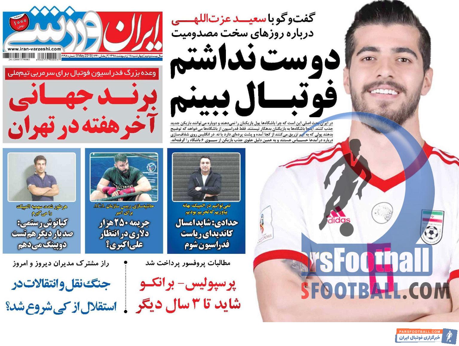 عناوین روزنامه ایران ورزشی چهارشنبه ۱۸ اردیبهشت ماه به شرح زیر است :