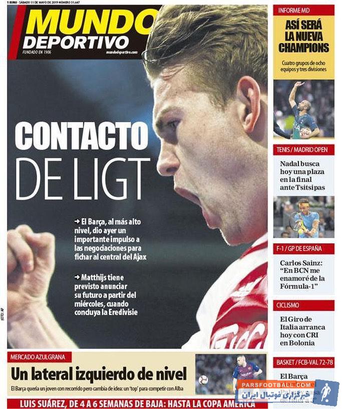 موندو دپورتیوو، روزنامه ورزشی اول شهر بارسلونا صفحه اول شماره امروز خود را به ماتیس دیلیخت ، کاپیتان آژاکس آمستردام اختصاص داد و از شدت گرفتن تلاشهای بارسلونا برای خرید او خبر داده است.