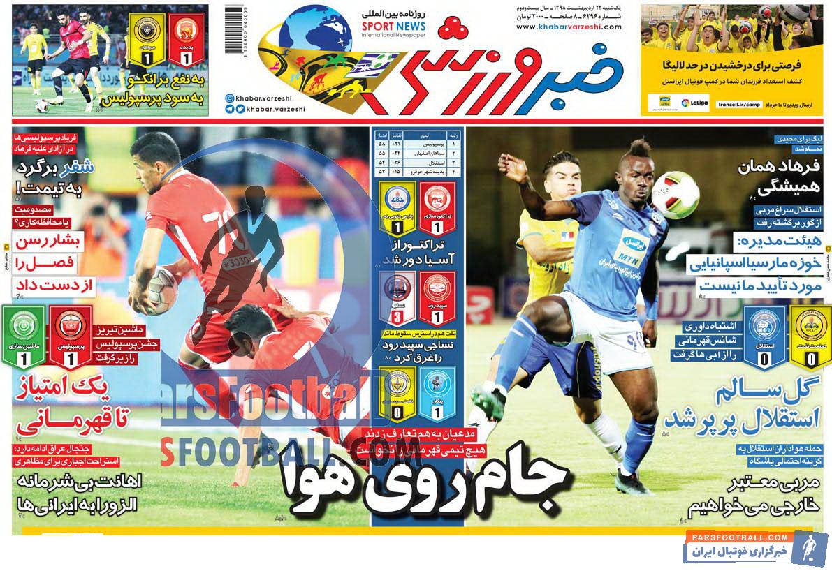 عناوین روزنامه خبر ورزشی یکشنبه ۲۲ اردیبهشت ماه به شرح زیر است :
