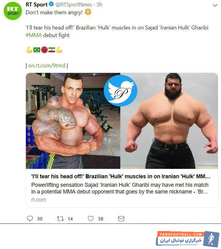 سجاد غریبی ورزشکار ایرانی قرار است به زودی در رقابتی حساس به مصاف رقیبی قدرتمند از برزیل برود.روماریو دوس سانتوز آلوس معروف به هالک برزیلی که معمولا دوست دارد بدن خود را به رنگ سبز در بیاورد، در پاسخ به کری خوانی سجاد غریبی ، هالک ایرانی، تهدید کرد در مبارزه MMA سر او را از بدنش جدا خواهد کرد!