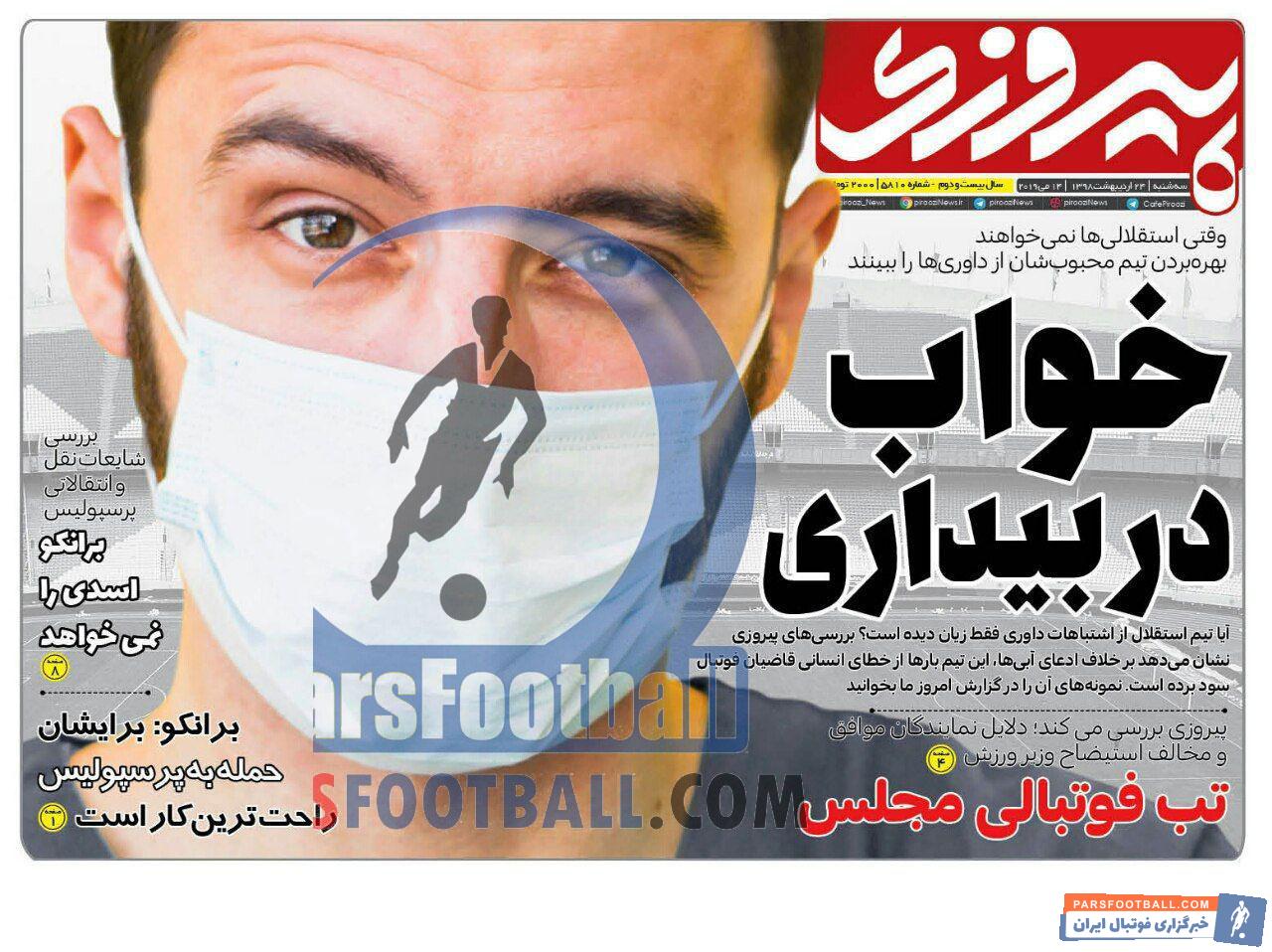عناوین روزنامه پیروزی سه شنبه ۲۴ اردیبهشت ماه به شرح زیر است :